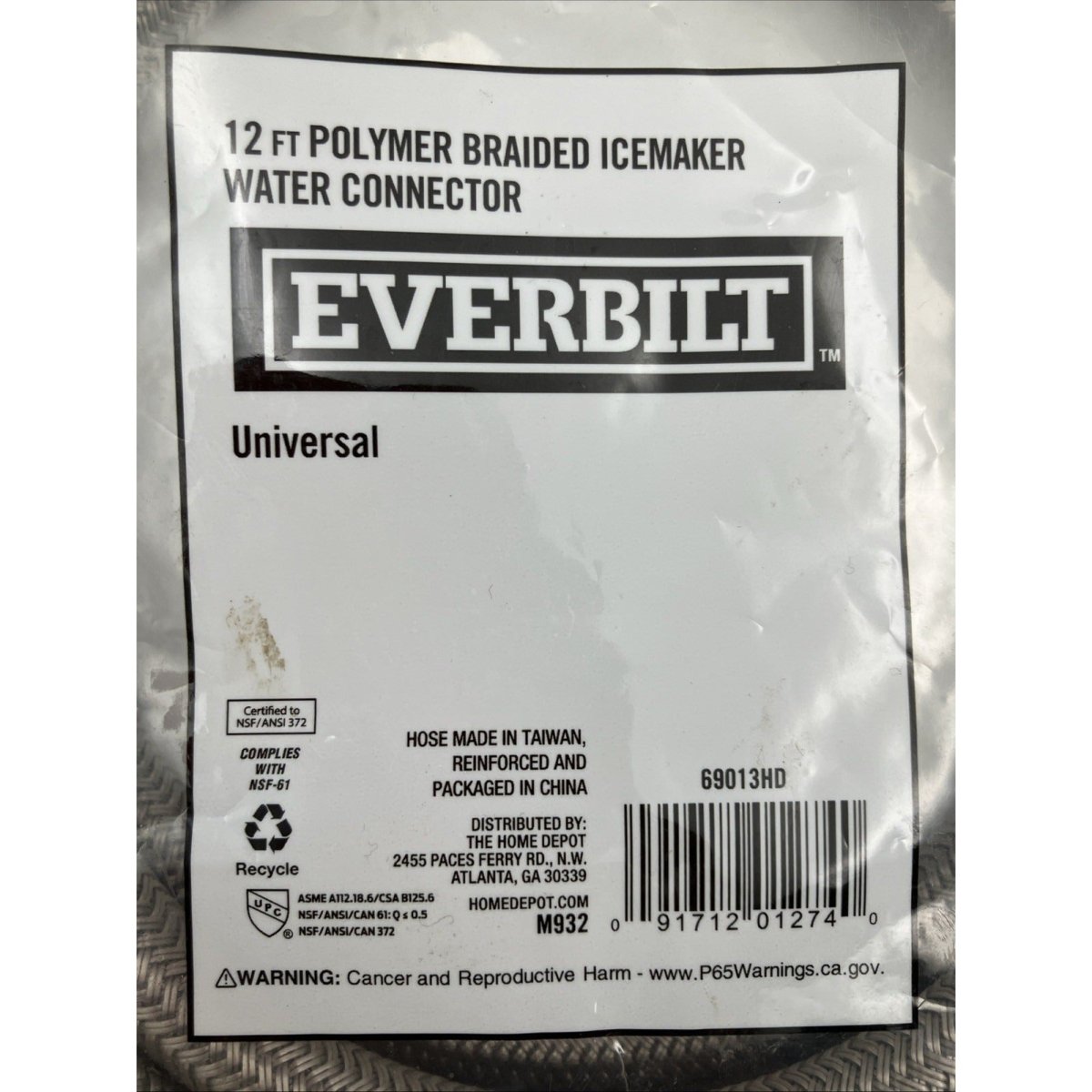 (2x) Everbilt 69013HD 12ft Polymer Braided Icemaker Water Connector NEW
