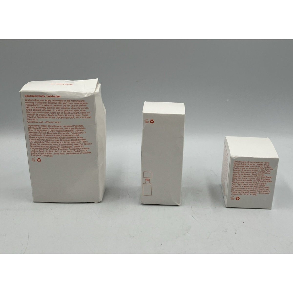 Condition: Dry Skin Gel is still new. The Body lotion and skincare oil are open box, seems like they are 95% full. Light Box Damage. Items shown in pictures are what's included. Please review all photos for details