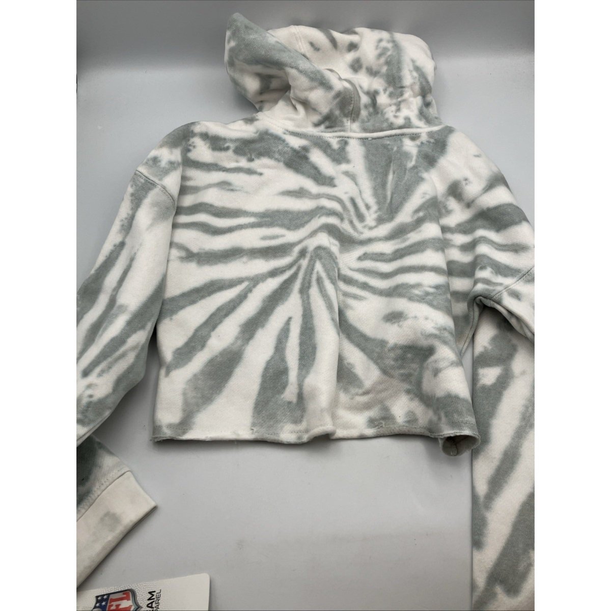 NFL New England Patriots Girls Gray Tie-Dye Crop Hooded Sweatshirt, Medium (7/8)