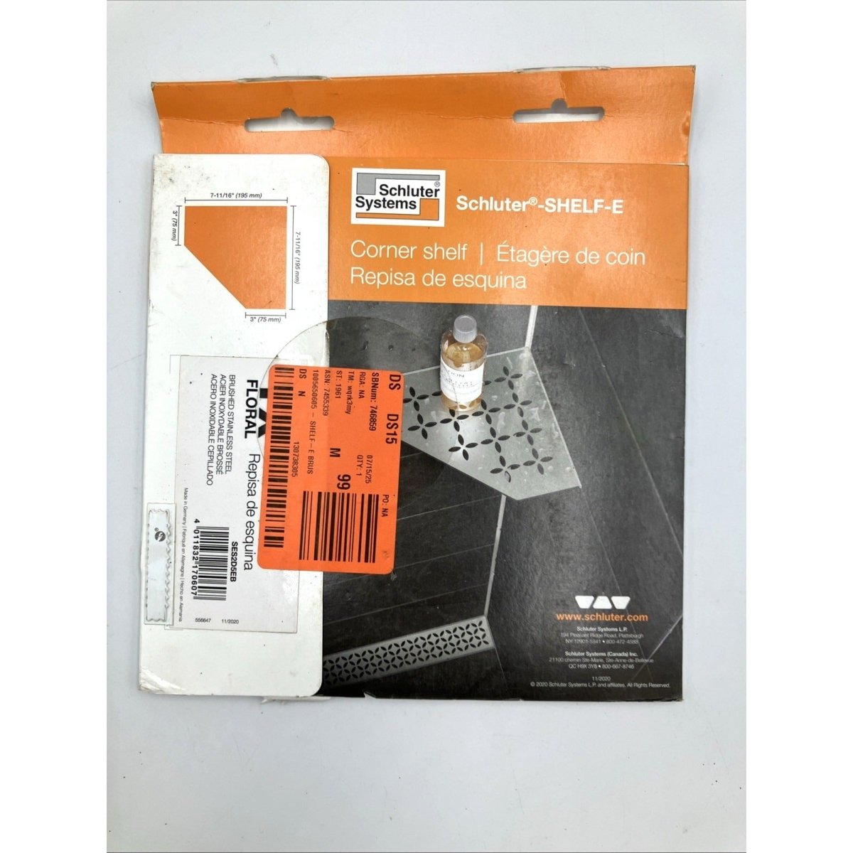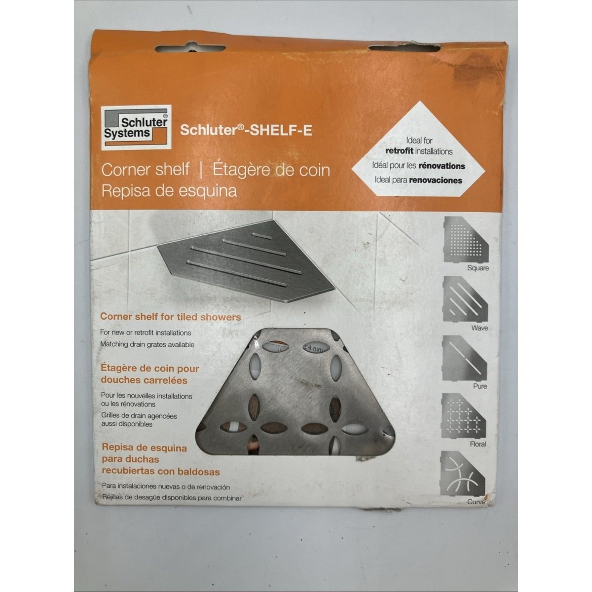 Schluter SES2D5EB Shelf-E Floral Design Corner Shelf - Brushed Stainless Steel.
